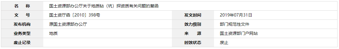 國土資源部辦公廳關于地質鉆(坑)探資質有關問題的復函