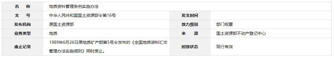 第二十七條 本辦法自2003年3月1日起施行。1989年6月26日原地質礦產部第5號令發布的《全國地質資料匯交管理辦法實施細則》同時廢止。