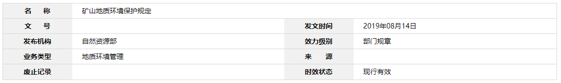 第九條自然資源部依據全國礦山地質環境調查評價結果,編制全國礦山地質環境保護規劃。