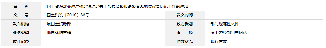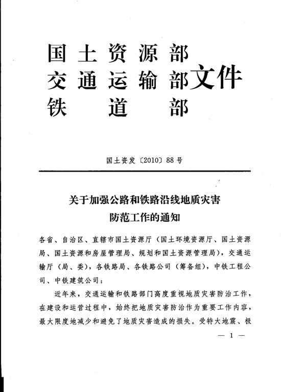 國土資源部交通運輸部鐵道部關于加強公路 和鐵路沿線地質災害防范工作的通知