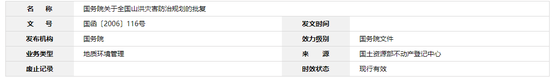 【地質環境管理】國務院關于全國山洪災害防治規劃的批復