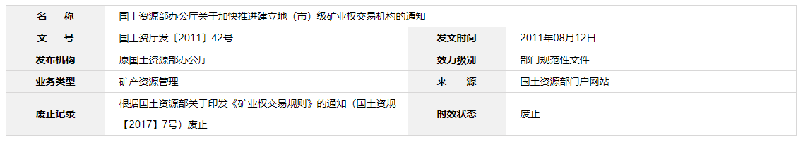 【礦產資源管理】國土資源部辦公廳關于加快推進建立地(市)級礦業權交易機構的通知
