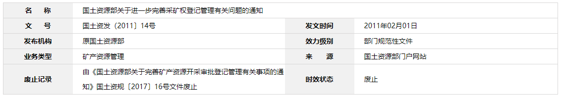 | 國土資源部關于進一步完善采礦權登記管理有關問題的通知 |