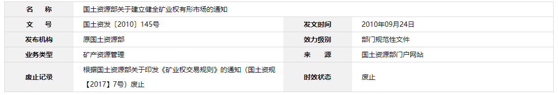 | 國土資源部關于建立健全礦業權有形市場的通知 |