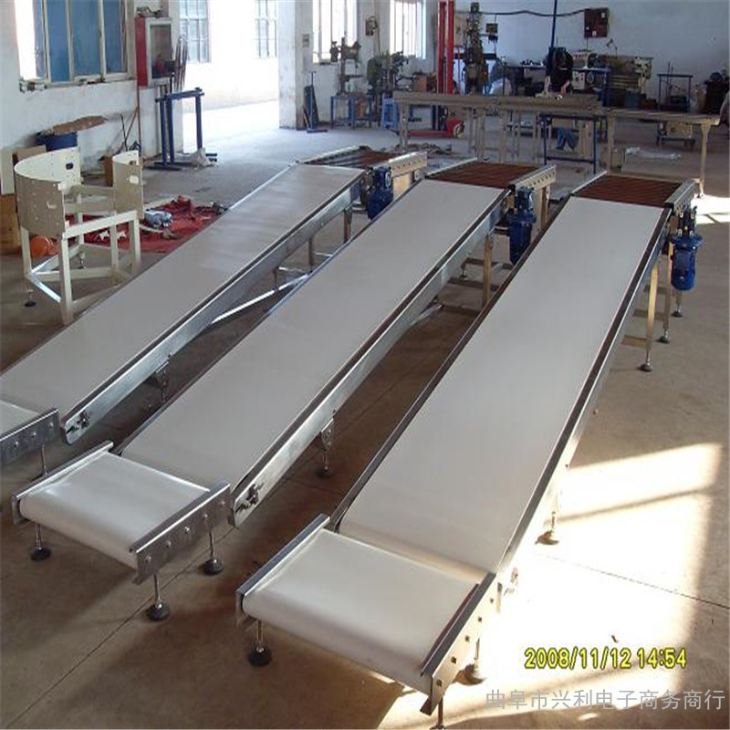 可移動式皮帶輸送機適用于散糧、包糧的輸送、堆垛、裝卸車等作業。有5米、8米、10米、12米、15米、18米、20米,等規格,移動式皮帶輸送機有電動、手動升降兩種型式。可移動式皮帶輸送機具有快、慢兩種速度、以適應散運、包裝的不同要求,提高了設備的利用,發揮了一機多用的性能。在移動式皮帶輸送機機架兩旁裝有旁導管,防止。糧包在輸送時掉包,并在進料斗兩側裝置有調節手柄,將側板撐起、防止糧食撒漏,便于散裝糧食輸送。大、小走輪均采用實心膠輪,防止壓碎糧食和倉庫地面。大小走輪均裝有滾珠軸承、小走輪具有自動轉向的功能,保證了機器移動輕便靈活。移動式皮帶輸送機機架采用焊接的珩架結構,在包運集中載荷下有足夠的強度和良好的鋼性。能量小,結構簡單,噪音小,維修方便.,注:本廠產品圖片均為實物拍攝。礦山石料皮帶輸送機帶防塵罩 訂做皮帶輸送機用來短途運輸及裝卸散料或單件重量公斤以下的成件物品,物料與輸送帶間沒有相對運動,從水平到傾斜(或垂直)能平穩過渡。可配備計數顯示功能,大小走輪均裝有滾珠軸承