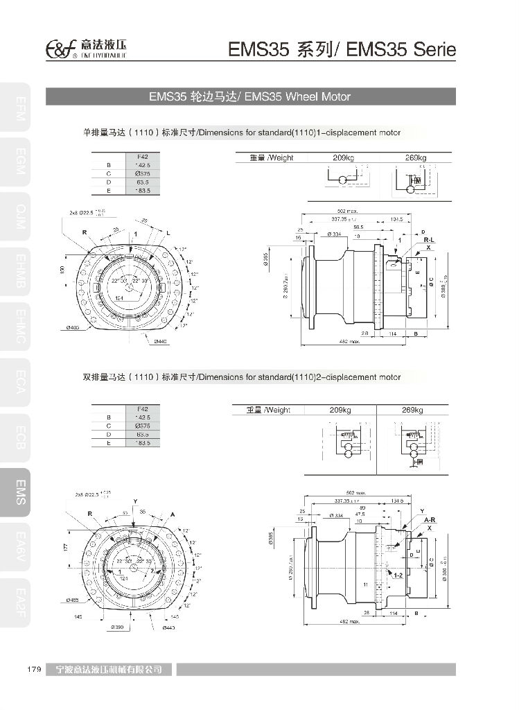 EMS系列車輪馬達:體積小,結構緊湊,輸出扭矩大,安裝方便,直接與行走輪胎連接。完全替代法國波克蘭POCLAIN公司的MS、MS系列。同時還可以替代力士樂公司的MCR系列曲線徑向柱塞液壓馬達。