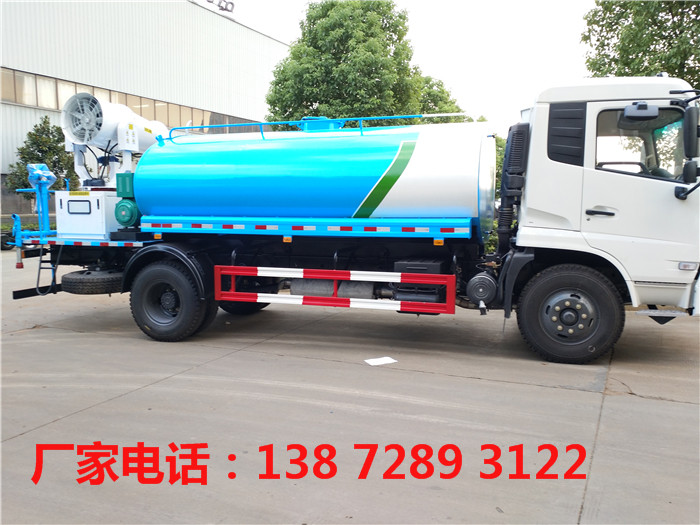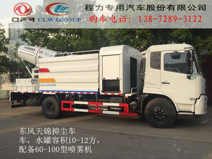 東風(fēng)天錦國五抑塵車:底盤采用東風(fēng)天錦國五底盤,康明斯6缸ISB180馬力發(fā)動機,6檔變速箱,9.00鋼絲胎帶備胎,原裝空調(diào),ABS,必須有環(huán)保,有免征,整車不超重不超尺寸,上裝配置:罐體容積9噸,罐體為圓形罐,罐體內(nèi)部做防腐,主管路鍍鋅,前沖后灑水車基本配置,工作平臺,采用億豐泵60/90大流量水泵,消防接口可自流,音樂喇叭,80-100米噴霧機組,