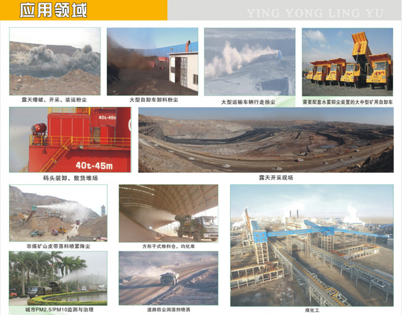 7、 煤碼頭、沿海港口堆料場、斗輪機作業(yè)、礦石、散裝粉料搬運、裝運、轉(zhuǎn)運,河道整治等粉塵污染治理以及港口治理; 8、卡車卸料口、自卸車卸料粉塵、大型裝載車工作粉塵治理