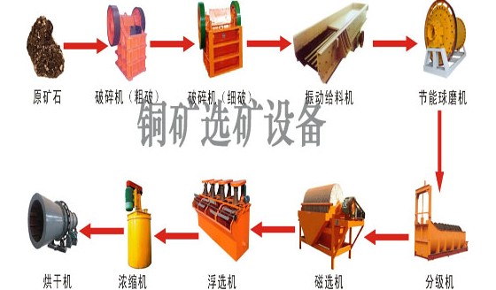 銅礦選礦設備工藝流程: