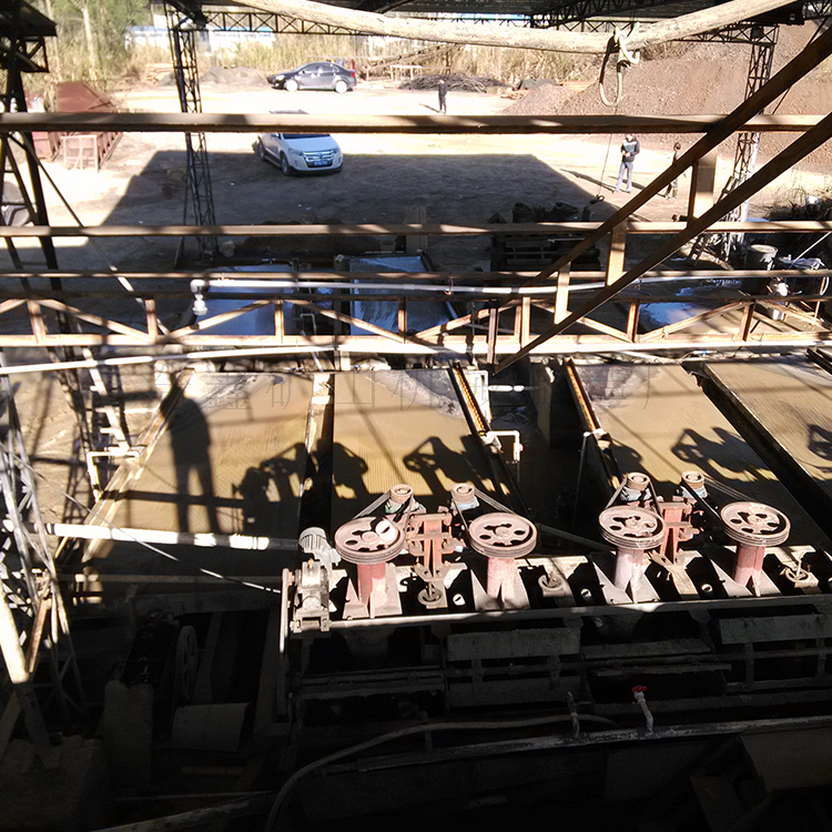 選礦搖床,是分選細粒礦石的常用設備。通常是由床面、機架和傳動機構三大部分組成。除此之外還有沖水槽,給礦槽,機座等,整個床面由機架支撐或吊起,機架上裝有調坡裝置。