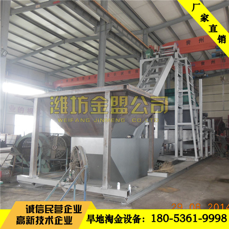 旱地移動式淘金設備:適用于沙灘、沙丘等礦區(qū),工作一段時間既將設備拖行移動地點,排除尾料堆積而產(chǎn)生不便和費用,提高工作效率。本設備淘金、洗沙同時進行,尾料堆積后顧無憂。砂石料經(jīng)過儲料斗、輸送機、砂石分篩、水利分流、淘金(格子溜槽或鼓動溜槽),濾水傳送。移動式淘金車,主要用于砂金分選的設備,可移動的淘金設備,移動方便,一體化設計,操作簡單,節(jié)約人工,處理量大,選金效果明顯,是當前砂金選礦中先進的產(chǎn)品設備。(可根據(jù)現(xiàn)場礦體類型或者客戶要求配選金鼓動溜槽、固定溜槽或離心選金機進行砂金選取)。