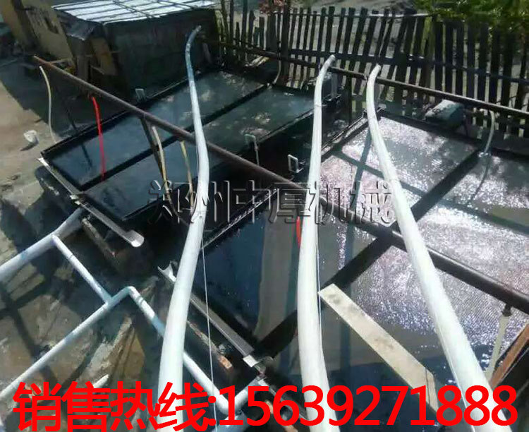 搖床是重力選礦的主要設(shè)備之一,重力選礦設(shè)備依據(jù)礦石類型可使用選礦搖床系列、螺旋溜槽、跳汰機(jī)等。 中厚機(jī)械研制了LS型(6-S型)等新式玻璃鋼搖床以取代木質(zhì)床面,鑒定認(rèn)為其結(jié)構(gòu)先進(jìn),性能良好,運(yùn)轉(zhuǎn)可靠,選別指標(biāo)優(yōu)良,在材質(zhì)、結(jié)構(gòu)、制造工藝等方 面與木質(zhì)床面完全不同,是對(duì)傳統(tǒng)木質(zhì)床面的重大革新,確定批量生產(chǎn)推廣使用。廣泛用于選別2-0.02毫米礦砂及礦泥級(jí)別的鐵、錫、鎢、鉭、鈮、錳、鉻、 鈦、鉍、鉛、金等有色、黑色、稀貴金屬礦物,選別4-0.02毫米的硫鐵礦:適當(dāng)改換床條型式后選別:以及分選其它具有足夠比重差及粒度組成合 適的混合物料。還可用于粗選、精選、掃選等不同作業(yè),選別粗砂(2-0.5mm)、細(xì)砂(0.5-0.074mm)、礦泥(-0.074)等不同粒級(jí)。