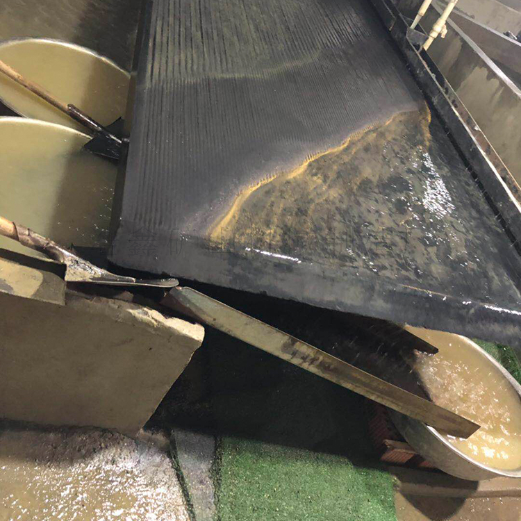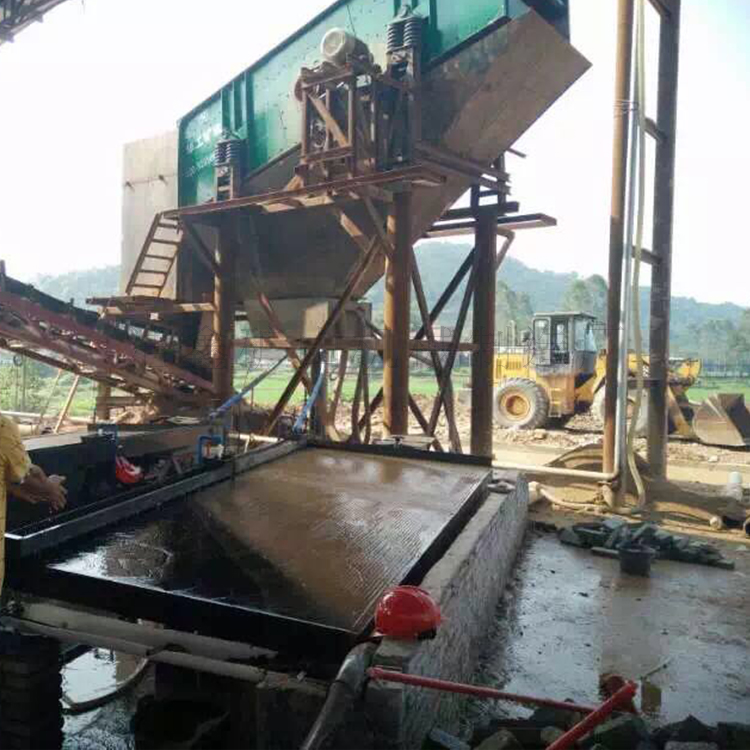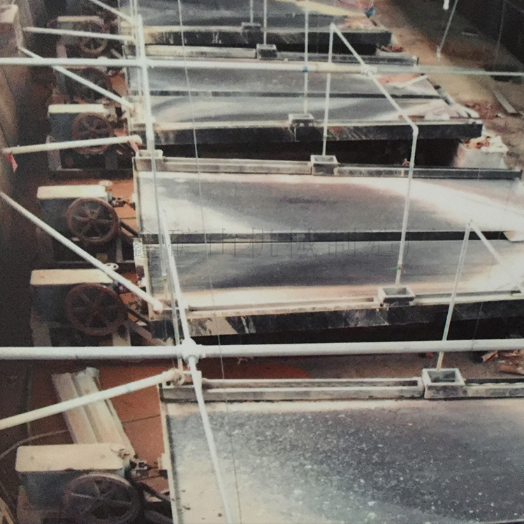 選礦搖床,是分選細粒礦石的常用設(shè)備。通常是由床面、機架和傳動機構(gòu)三大部分組成。除此之外還有沖水槽,給礦槽,機座等,整個床面由機架支撐或吊起,機架上裝有調(diào)坡裝置。