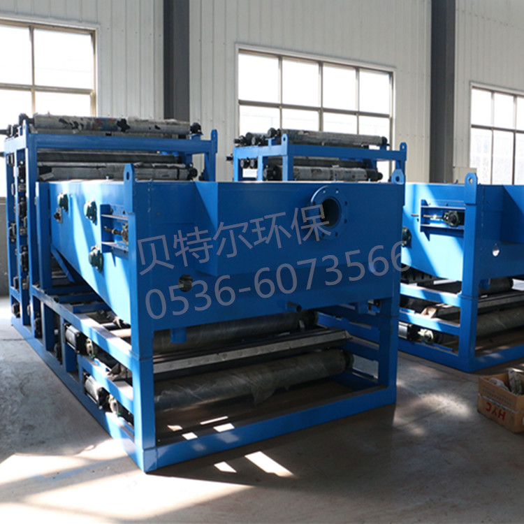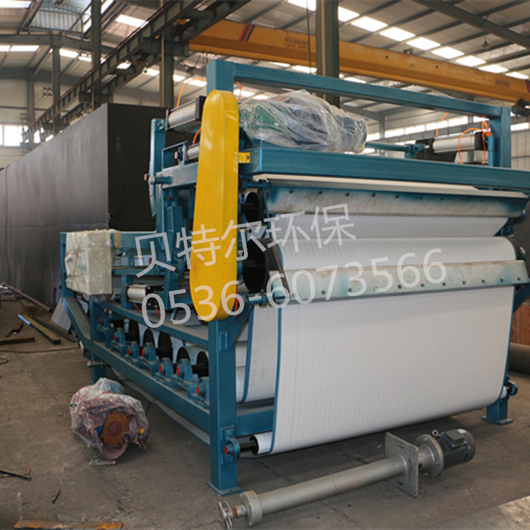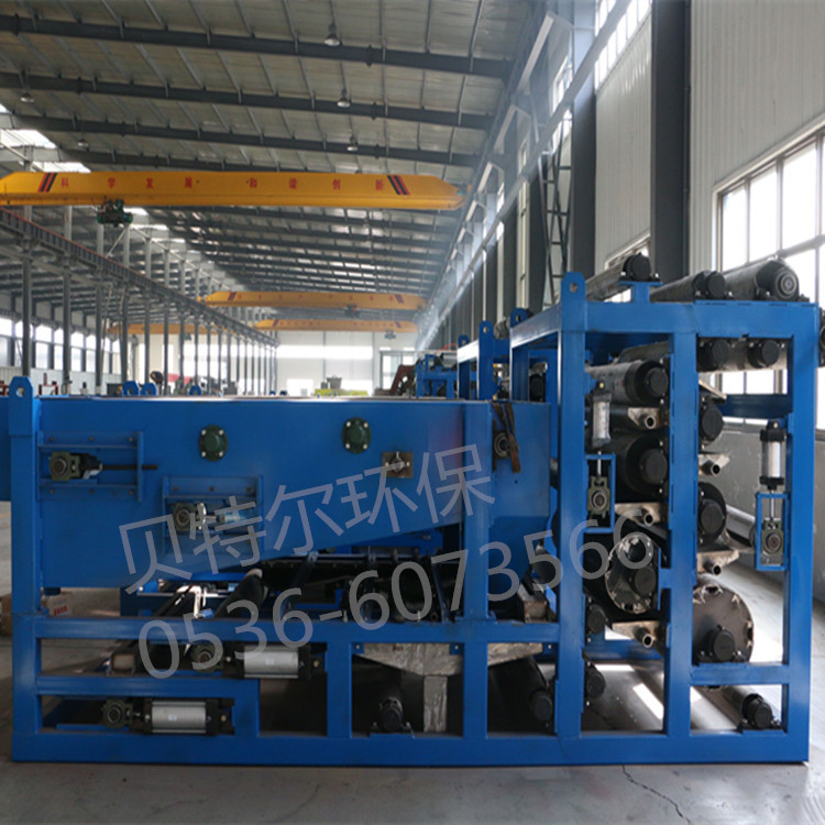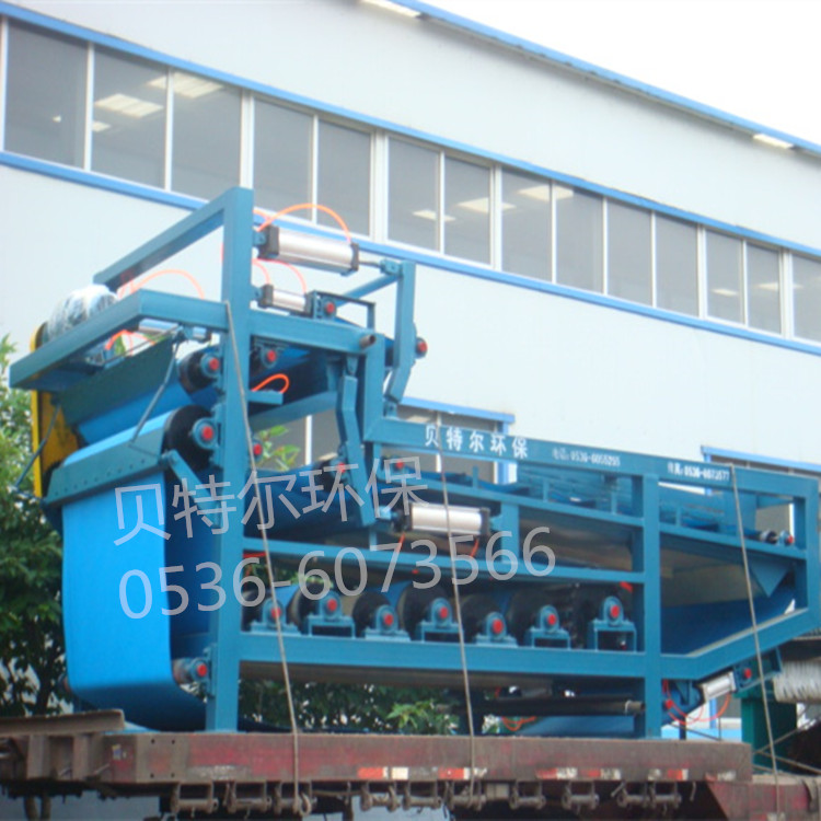 帶式(污泥)壓濾機是消化吸收國外先進技術研制開發的一種脫水設備。具有脫水效率高,使用壽命長等特點,所采用濾帶和軸承均為高品質件。作為污水處理的配套設備,可將氣浮處理后的懸浮物及沉渣以及污水處理中各生化工段產生的污泥壓濾脫水,壓成泥餅,達到防治二次污染的目的,是一種很好的固液分離設備;該機還可用于漿料濃縮、黑液的提取以及適用于各種固液分離工藝。