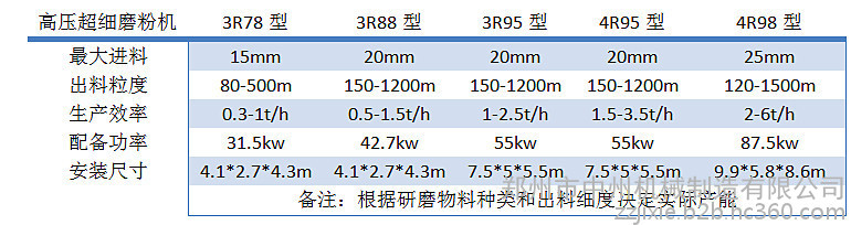 高壓磨型號及參數: 詢價熱線13164301566