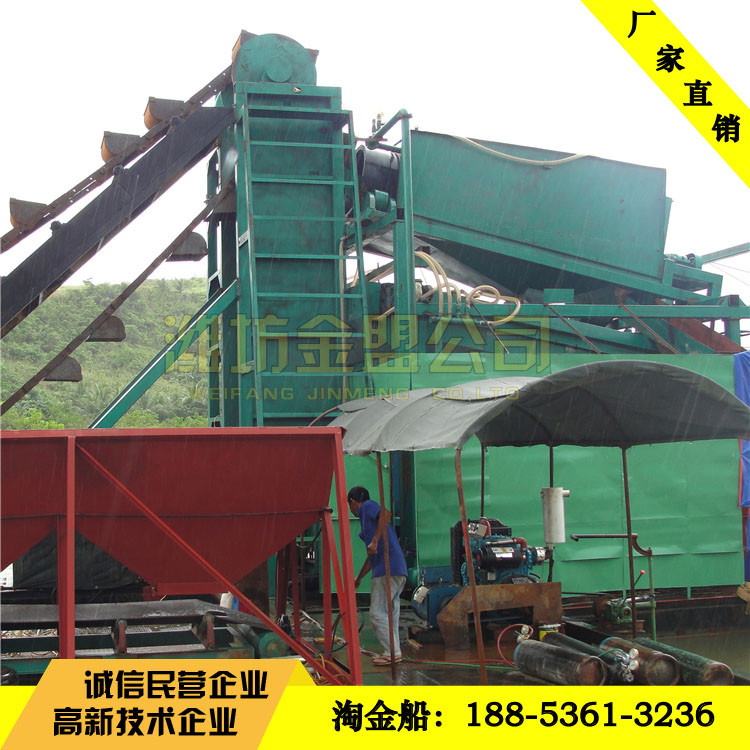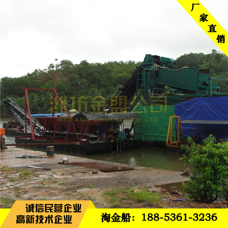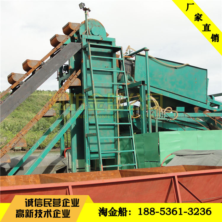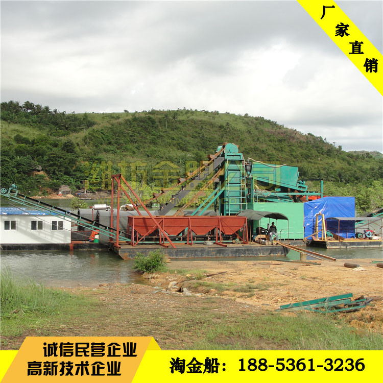 選礦設備淘金船出口配置,南非客戶定制的淘金船現(xiàn)場選金效果,淘金設備出口