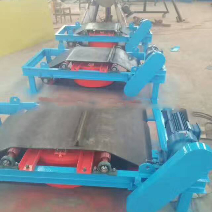 除鐵器本體磁路設計合理,磁場強度高、透磁深度大,故適合料層較厚的場合除鐵。又因采用全密封結構,制造過程中經真空干燥等特殊工藝處理,所以能有效地防止粉塵和有害氣體對線圈侵蝕,對環境和氣候的適應性強,使用壽命長。RCDD系列自冷式自缷電磁除鐵器,是在RCDB系列自冷懸掛式電磁除鐵器的基礎上增加了驅動電機、滾筒、帶刮板的缷鐵膠帶等組成的缷鐵機構。在工作過程中缷鐵機構自動將缷鐵皮帶上吸附的鐵磁性物質拋到除鐵器以外的集鐵箱內,無需停電人工清理,實現了除鐵自動化。在鋼鐵廠、水泥廠多用于礦渣除鐵和保護輥壓機、立磨、破碎機等重要設備。