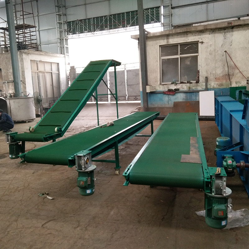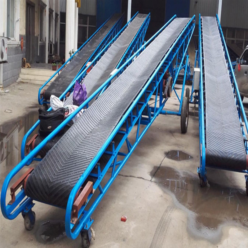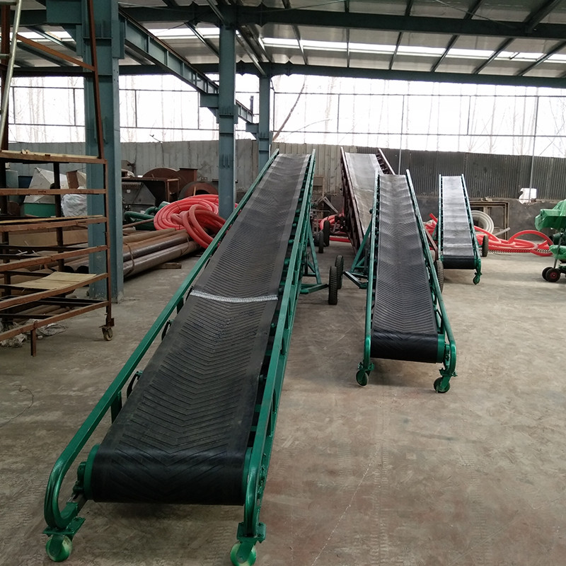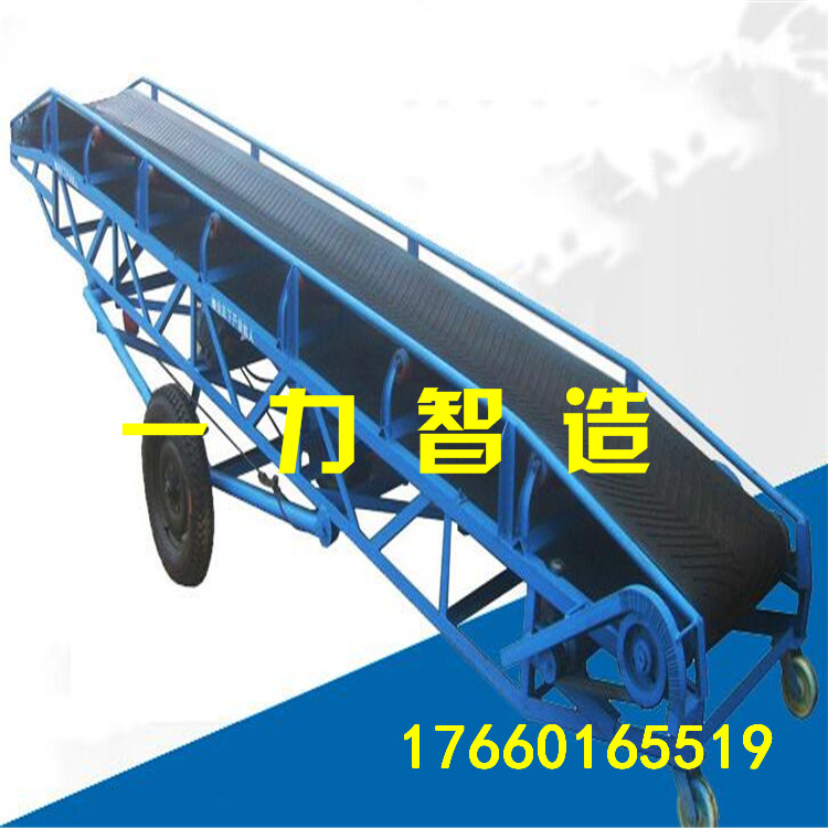 可移動(dòng)式皮帶輸送機(jī)適用于散糧、包糧的輸送、堆垛、裝卸車(chē)等作業(yè)。有5米、8米、10米、12米、15米、18米、20米等規(guī)格,移動(dòng)式皮帶輸送機(jī)有液壓、電動(dòng)、手動(dòng)三種升降型式。可移動(dòng)式皮帶輸送機(jī)具有快、慢兩種速度、(也可配備調(diào)速電機(jī),隨意操控速度)托輥可選用平托輥、V型托輥、U型托輥,以適應(yīng)散料、整包的不同要求,提高了設(shè)備的利用,發(fā)揮了一機(jī)多用的性能。在移動(dòng)式皮帶輸送機(jī)機(jī)架兩旁裝可配有擋管或擋邊,防止糧包在輸送時(shí)掉包,防止糧食撒漏,便于散裝糧食輸送。大、小走輪均采用實(shí)心膠輪或充氣橡膠輪,防止壓碎糧食和倉(cāng)庫(kù)地面。小走輪具有自動(dòng)轉(zhuǎn)向的功能,保證了機(jī)器移動(dòng)輕便靈活。移動(dòng)式皮帶輸送機(jī)機(jī)架采用焊接的珩架結(jié)構(gòu),在包運(yùn)集中載荷下有足夠的強(qiáng)度和良好的鋼性。