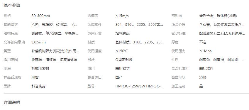 二、HMR3系列脫硫泵專用機械密封是配套與五二五泵業(yè)的專用產(chǎn)品,軸徑有HRM-82、HRM-97、HRM-125、HRM-142、HRM-158、HRM-175、HRM-198。