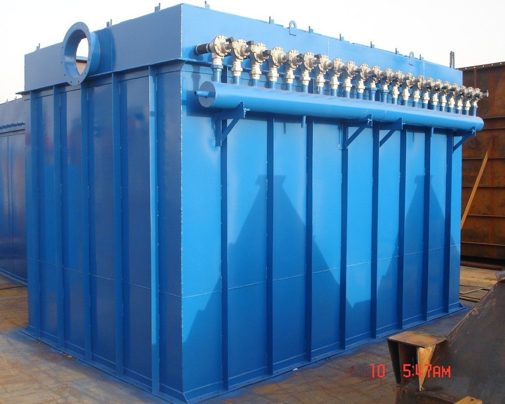 過濾室中由花板分隔成凈氣室(上箱體)和含塵室(中箱體)兩部分。濾袋安裝在花板上。含塵氣流在穿過濾袋進入凈氣室(此過程即為過濾過程或稱為除塵過程)時,濾袋外表面即留下一層灰層(布粉層)。與濾袋材質相比,灰層更為細密。事實上,小的塵粒是由灰層捕獲的,否則就能穿過濾袋。因此,新的濾袋在剛投入使用時,將有極細微的塵粒穿透濾袋逃逸,在煙囪口形成羽狀煙,當布粉層形成后,羽狀煙即消失。