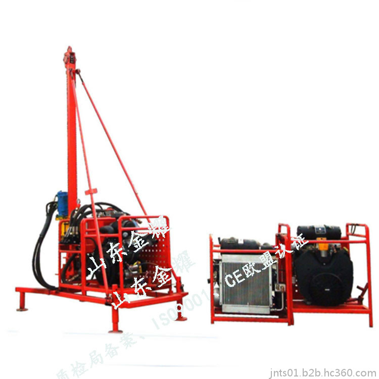 金耀JYZ-20山地鉆機主要適用于山地、黃土塬、丘陵、戈壁、農田等復雜地表的勘探鉆井。鉆機采用全液壓驅動,山地地區主要采用空氣鉆井和空氣震擊鉆井。在其它地區,更換鉆具可實現螺旋鉆井,增加泥漿泵可實現泥漿鉆井。最佳的框架組合方式,組合和分拆快捷方便,便于搬遷。可分拆獨立框架模塊,適合人抬或直升機吊裝。模塊化快拆結構和多種鉆井工藝相結合。山地鉆機是一種全液壓操控式、輕便式山地物探鉆機,是基于我廠第一代山地鉆機基礎上開發的一種新型鉆機,主要適用于土層及巖石層中鉆井,被廣泛使用于山地、丘陵無水地帶石油爆破孔和水利及其他建設工程鉆鑿爆破孔的施工,需要時本機也可選配泥漿泵,實現泥漿鉆井。