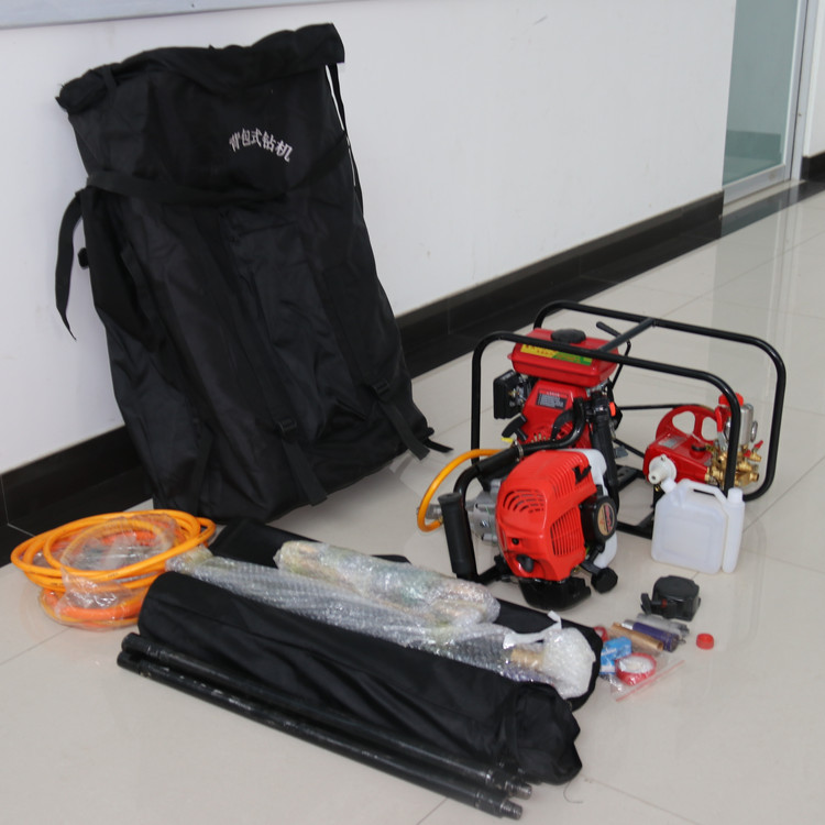 整套鉆機及相關配件裝入背包后,一套標準配備的便攜式鉆機及其附件的普通成年人輕松負擔。