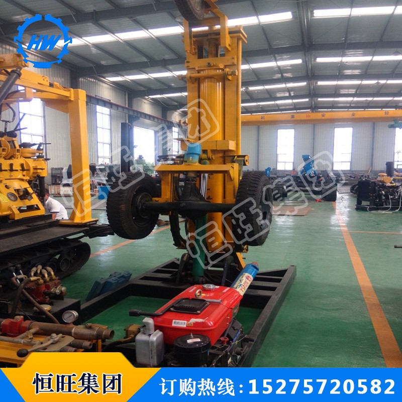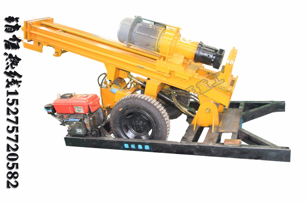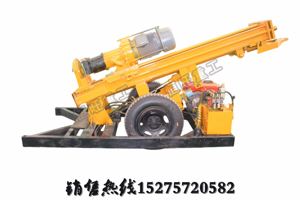 HQZ系列水井鉆機(jī)是一種輕型、高效、多功能的鉆鑿孔設(shè)備,它主要適用于鉆鑿水井、農(nóng)業(yè)灌溉井、地?zé)峥照{(diào)孔及其他用途的井孔,尤其適用于山區(qū)和巖石地層的取水工程。該鉆機(jī)可在不同地層上進(jìn)行穿鑿工作,鉆孔直徑可達(dá)254mm。該鉆機(jī)采用新型液壓技術(shù),配套大扭矩液壓馬達(dá)回轉(zhuǎn)以及大缸徑液壓油缸推進(jìn),名廠多缸發(fā)動機(jī)為液壓系統(tǒng)提供動力,兩級空濾以及空壓機(jī)進(jìn)氣設(shè)計(jì),延長柴油機(jī)的使用壽命。獨(dú)特的泵組設(shè)計(jì)方便維修,降低維修成本。集中控制的液壓操縱臺,方便操作。該系列鉆機(jī)采用挖掘機(jī)履帶底盤,越野性能強(qiáng)。獨(dú)立的模塊設(shè)計(jì),可使鉆機(jī)裝在卡車上,增加其機(jī)動性。兩檔回轉(zhuǎn)和推進(jìn)速度可滿足在土層和巖層的不同穿鑿需要。組合式的定位器,可根據(jù)不同型號的鉆桿和沖擊器進(jìn)行調(diào)整更換定位盤,保證定位定心準(zhǔn)確、可靠。卷揚(yáng)機(jī)構(gòu)方便鉆桿和沖擊器的吊裝,降低勞動強(qiáng)度。