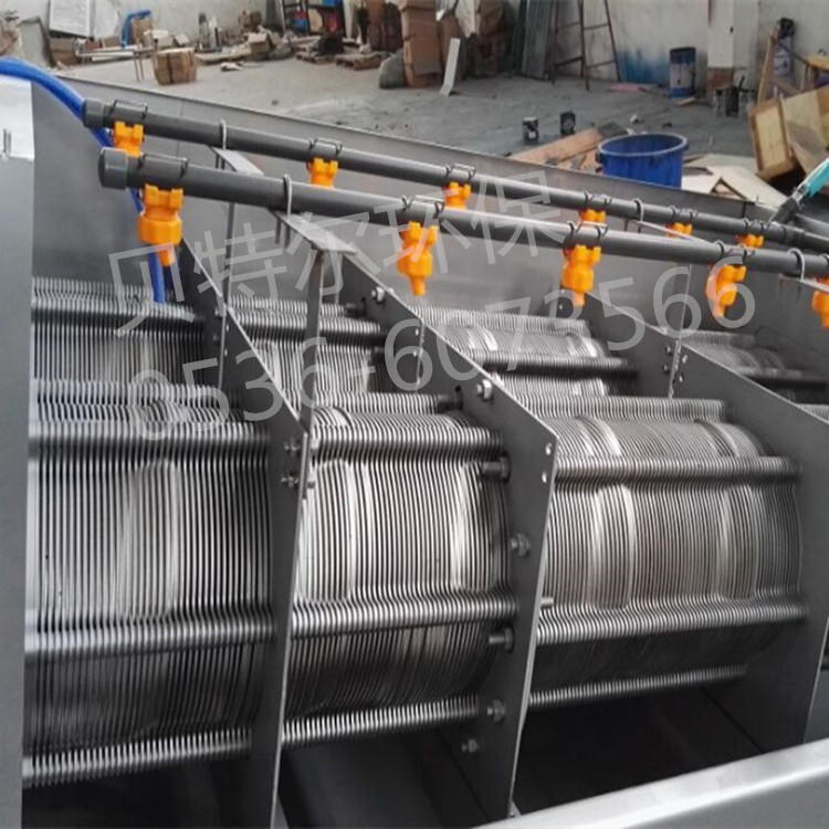 螺旋軸的旋轉(zhuǎn)在推動(dòng)污泥從濃縮部輸送到脫水部的同時(shí),也不斷帶動(dòng)游動(dòng)環(huán)清掃濾縫,防止堵塞。