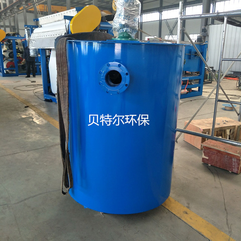 廢水處理廠的污泥經泵進入污泥攪拌槽內與高分子凝集劑混合作用后,使污泥中細小的懸浮狀顆粒經高分子凝集劑的架橋作用形成膠羽狀較大的顆粒,而后以重力流方式由攪拌槽上端溢流入脫水機的自動分布裝置,使膠羽污泥均勻的分布在重力脫水區的濾布上。