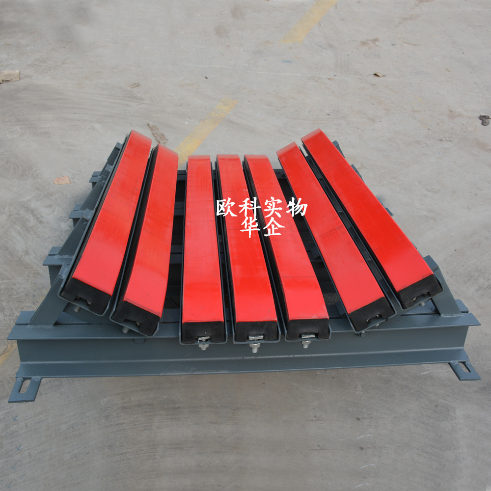 緩沖床由兩部分組成,包括耐用美觀的緩沖條還有支撐力度強的緩沖支架。緩沖條在工作中起著關鍵性的作用,礦下用的緩沖床必須用防靜電抗阻燃的,所以對緩沖條的要求特別高,采用加厚聚乙烯層,應用更廣泛,產品更耐用。聚乙烯表層的前后端均成弧形,從而保證了送帶通過時的順滑。性能優良的特種橡膠層有效吸收物料下落時的沖力。光滑的UHMW聚乙烯表面將送帶與緩沖條的摩擦降至。緩沖床的支架采用牢固的鋼支架。
