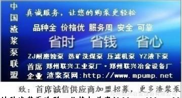 河南鄭州聯興冶金設備有限公司·鄭州聯興冶金設備廠·鄭州聯興工業泵廠,位于中原經濟區核心城市河南鄭州,南依嵩山,北眺黃河,緊鄰310國道,隴海鐵路京廣鐵路·連霍高速·二廣高速,鄭西高鐵,鄭武高鐵,區位交通便利;公司匯集了一大批銳意進取并代表著行業**水平的管理、科研精英,現有**工程師12人,工程師25人,重點院校本科生40人**技師98人,在線員工500余人。公司集科研·設計·開發·生產·銷售服務于一體,公司始終以全新的理念科學專注地及時將每一種新技術元素融入到其產品中,聯興公司追求“專業· 創新·優質·服務”;“精益求精,追求**”是企業的質量方針。創新,永不停步,追求,永無止境;公司的每一道生產工藝嚴格遵循IS09001質量管理體系,不斷強化內部管理,挖掘自身潛力,發揮技術優勢專業特長精鑄每一件產品;聯興ZLX·ZJ系列工業渣漿泵所有產品通過相關認證,質量保證達到或超過行業相關標準,多項技術獲得****。前沿的科學技術,為產品提供了有力地保障;優質之產品,為市場及客戶提供了創造價值之有效利器;產品投放市場十數年來,與山西,河南,陜西,山東,新疆,內蒙古,云南,貴州,四川及東北三省等多家洗選行業合作,產品遍布全國各地,并遠銷東南亞地區。企業連續多年被評為省級“守合同,重信用”單位和質量技術監督局“重點服務單位”。中國河南鄭州聯興企業,熱枕歡迎國內外客友聯手合作,共創偉業,共鑄輝煌,共贏明天! 特別友情提示,動力源之信賴;聯興企業·匠心營造,進無止境,用心在做;始終堅持以科技為先導,不斷研發出科技創新型、適用型高性價比的產品,服務造富社會,回饋客戶經年的信賴與支持,共贏共榮共發展!聯興泵業生產的聯興ZLX型系列臥式工礦業離心渣漿泵(壓濾機·浮選機·濃縮機·盾構機·噴播機配套喂料渣漿泵)、YZ型立式液下渣漿泵,過流部件及泵體均采用鎳(Ni)鉻(Cr)合金復合材質精鑄,該材料特殊的物理特性,使之同時具備了耐磨·耐腐蝕·耐高溫的獨有性能,因而確保聯興各規格型號礦業渣漿泵性能更穩定,一機多用、適應工礦范圍更廣,使用壽命更長,綜合效益率比更突出。沒用不知道,用過都說好!【聯興】ZLX型系列工礦通用渣漿泵,科技精品,性能**·無以倫比,超強耐磨蝕,超長使用壽命,超高性價比;不比不知道,用過都夸好,口碑勝似廣告;謹防假冒!【聯興】品牌渣漿泵,性能超群,品質保障,品種齊全,性價比高,總有一款適合您;產品、服務體系完善,免除您的一切后顧之憂。工礦渣漿泵選型、咨詢、訂購產品·財富服務熱線:0371--63055129。 聯通你我,溝通無限;興達天下,共榮共興共發展! 聯興企業,創造價值,伴您成功每一步。其內涵在于,在提供“高性價比產品”和“超越顧客期待”的產品服務基礎上,率先在行業內推出“一站式購物店”,-- 利用“中國渣漿泵聯盟”產品資源匯聚之優勢和“中國泵業信息網”海量的泵業產品供需信息,加上與多家服務信譽好的貨運物流企業緊密合作三大優勢,不同性能、規格型號泵設備產品,一個電話,一站搞定;為市場及客戶提供科學合理、經濟實用、高效、便捷的泵設備產品供需渠道平臺,質優價廉的系列產品為消費者提供全方位的服務,真正實現合作共贏,創造價值。
